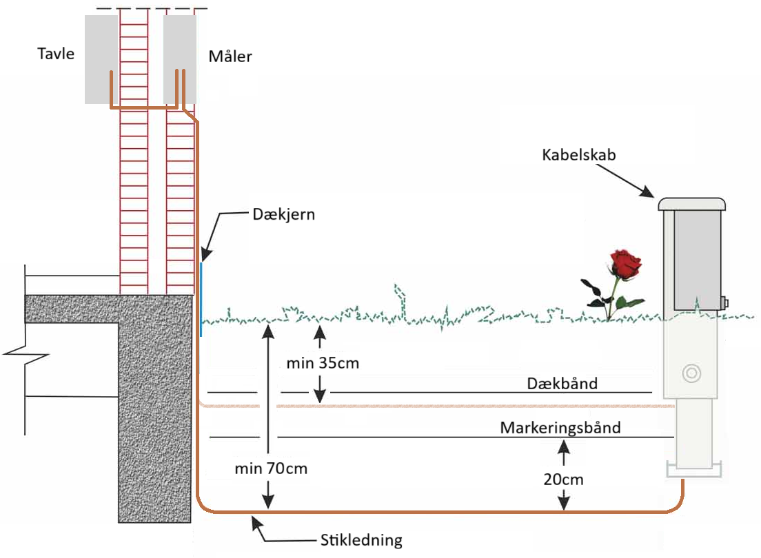 Læs om stikledningen s. 204 - 216 i Installationer (Gråbog)