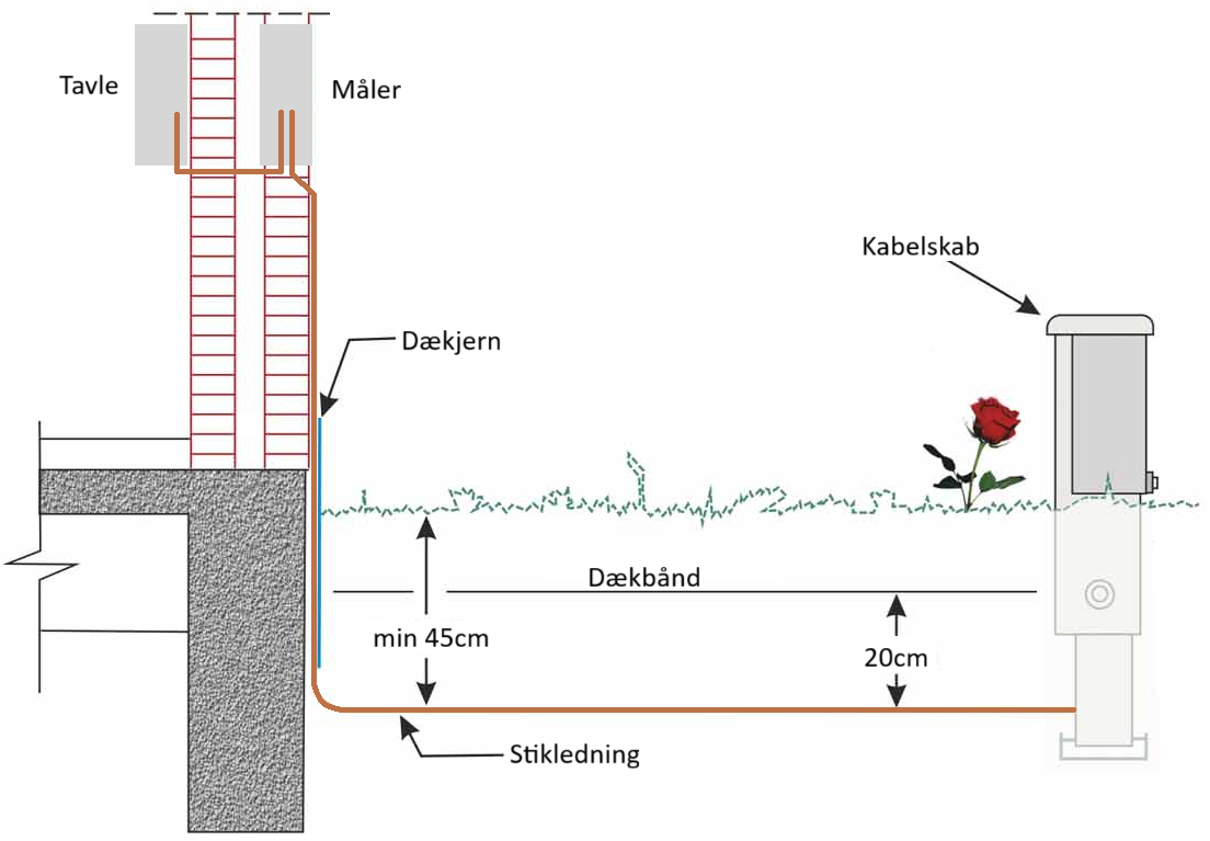 Læs om stikledningen s. 204 - 216 i Installationer (Gråbog)