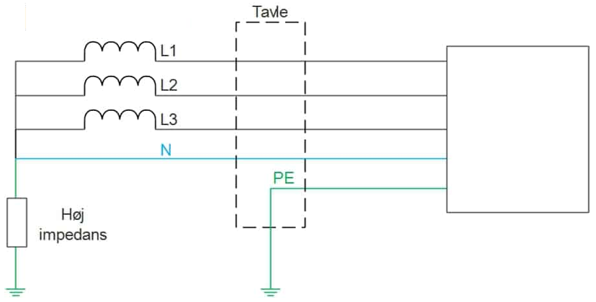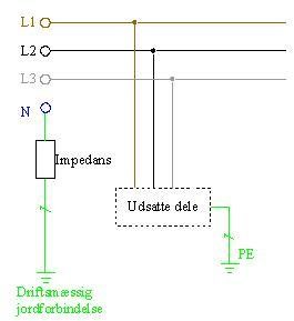 IT–systemet har alle spændings førende dele isoleret fra jord, eller ét punkt jordforbundet gennem en impedans, og de udsatte ledende dele i installationen er enten: