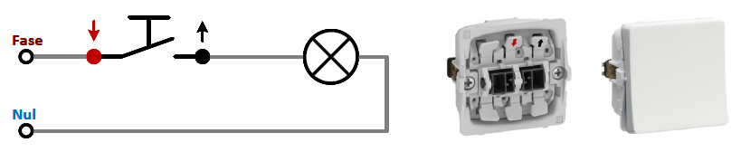 Er en enkel afbryder (1-polet afb.) styrer én eller flere lamper. Fasen føres gennem afbryderen og videre til lampen(erne).